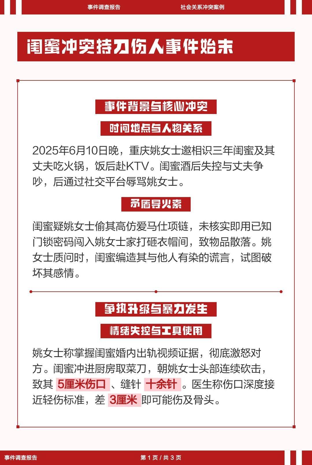 重庆的涵女士怎么也想不到,自己掏心掏肺对待三年的“闺蜜”,会提着菜刀砍向她的头。鲜血顺着额头流进眼睛时,她看见对方扭曲的脸上还挂着冷笑——这场景,比伤口裂开的剧痛更让她心寒。